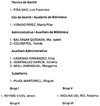 RESOLUCIÓ del Rectorat de dia 21 d'abril de 1988 per la qual es fa pública la relació de representants del personal d'Administració i Serveis (grup d) elegits per al Claustre de la Universitat.